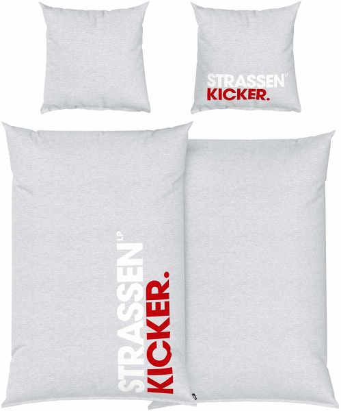 STRASSENKICKER Bettwäsche Set Grau aus 100% Baumwolle, Renforcé, Maße: 1x Kissenbezug 80×80 cm,1x Bettbezug 135×200 cm.