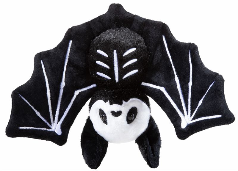 - Gruselig-süßes Design – Schwarze Plüschfledermaus mit gesticktem Skelettmuster