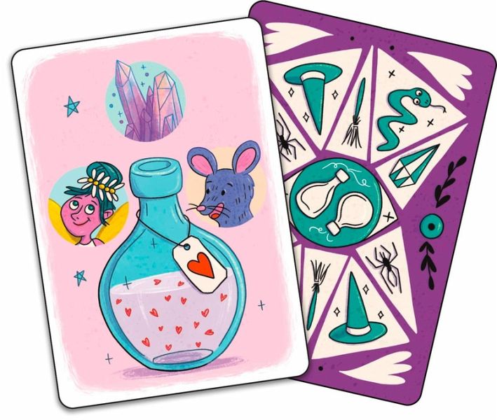Wer sammelt als Erstes die richtigen Zutaten für seine Zaubertränke? In dem temporeichen Kartenspiel, erlebt ihr ein magisches Abenteuer voller Taktik, Risiko und spannender Wendungen. Sammelt Zutaten wie Feenstaub, Drachenschuppe, Krötenschleim, Bergkristall und Mäusehaar, um eure Zaubertränke zu brauen. Doch passt auf - Hexen können eure Pläne vereiteln und euch wertvolle Karten nehmen. Cleverness, Wagnis und ein bisschen Glück sind bei diesem Kartenspiel für Kinder ab 6 Jahre gefragt.
