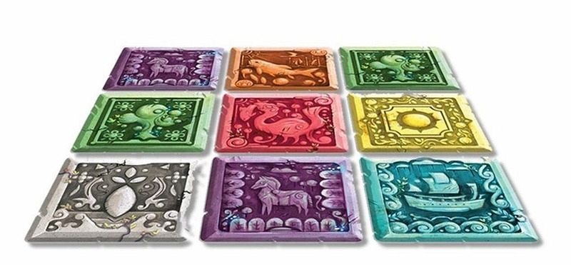 Neun mystische Steine liegen vor euch aus. Versucht diese so zu arrangieren, damit sie zu den Vorgaben auf euren Handkarten passen.