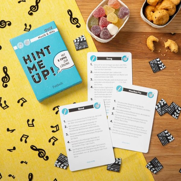 Du kannst alle Albumtitel von Queen aufzählen und die Bandmitglieder von BTS auseinanderhalten? Du behauptest, in Sachen Musikwissen macht dir so schnell keiner was vor? Beweise es! In diesem kurzweiligen Quiz rund um Musik und die größten Hits aller Zeiten musst du so schnell wie möglich einen gesuchten Begriff erraten. Nach und nach erhältst du dafür Hinweise, die dich der Lösung immer näherbringen. Ein Song aus den 1980ern? Von einer fünfköpfigen Boyband? Wenn du der Sache jetzt schon auf der Spur bist, ist "Hint me up!" genau das richtige Spiel für dich und deine Freund_innen.