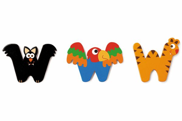 Lustige Buchstaben von A-Z mit Tiermotiven zum Dekorieren von Kinderzimmern. Die Buchstaben bestehen aus Holz und sind fein ausgeschnitten, wodurch sie sehr kleine Details wie Pfoten, Zähne oder Flügel aufweisen. Klebepads sind im Lieferumfang enthalten.