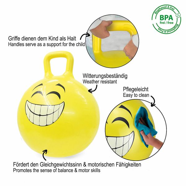 Seit Jahrzehnten sorgen Hüpfbälle für reichlich Spaß und fördern spielerisch den Gleichgewichtssinn. Dank des robusten und widerstandsfähigen Materials kann er sogar bis zu 50kg Belastung aushalten.