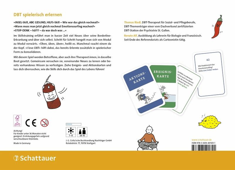 Thomas Riedl, DBT-Therapeut für Sozial- und Pflegeberufe, DBT-Thementräger in der Psychiatrie St. Gallen für beim Dachverband zertifizierte DBT-Station. Renate Alf, Ausbildung als Lehrerin für Biologie und Französisch. Seit Ende des Referendardienstes als Cartoonistin tätig. Thematische Schwerpunkte: Familie, Kita, Schule, Paarkommunikation. Dem Thema Psychotherapie im Allgemeinen widmet sie sich in ihrem Cartoonband "Was würde Ihr inneres Kind jetzt tun? Cartoons aus der Praxis" (Schaltzeitverlag 2026).