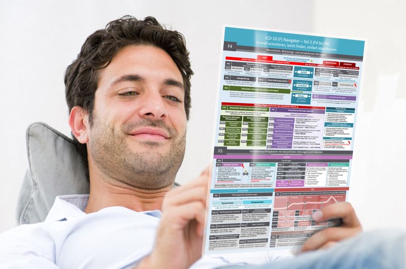 Dieser Navigator will Gedankenstütze und Hilfsmittel sein im konkreten Kontakt mit dem einzelnen Klienten oder auch, wenn Sie aktuell für eine Prüfung lernen. Der ICD-10 Navigator (Teil 2) bietet Ihnen auf 2 Seiten eine Übersicht der 6 Kapitel (F4 - F9) in anschaulichen Info-Grafiken.