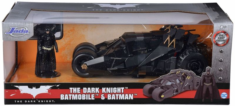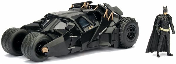 Aus The Dark Knight kommt Batmans Super-Fahrzeug Tumbler! Mit seiner Zinkdruckgusskarosserie und den Gummireifen ist dieses Batmobil im Maßstab 1:24 ideal für jede Sammlung.