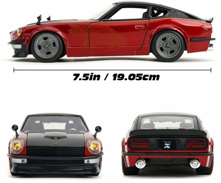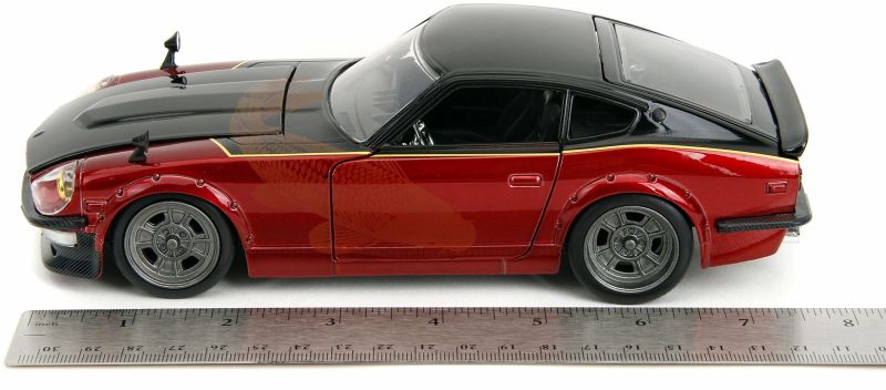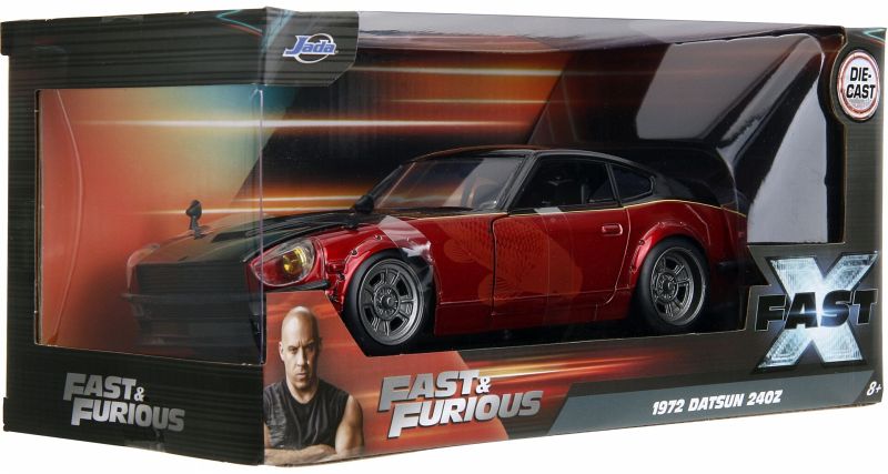 Datsun 240Z aus dem Film - Dieses detailreiche Modell (20 cm) ist eine Nachbildung des 1972er Datsun 240Z aus dem zehnten Teil der Fast & Furious-Reihe ("Fast X"), in dem Han Lue dieses Auto fährt. Mit seiner roten Lackierung, dem eleganten Design und dem detaillierten Innenraum fängt dieses Modellauto perfekt die Atmosphäre der Filme und das ikonische Fahrzeug ein.