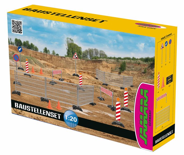 Die Palette der Jamara-Baustellenfahrzeuge ist breit gefächert. Auch eine Baustelle will organisiert sein, deshalb jetzt neu im Sortiment das Bausellenset als perfekte Ergänzung sowohl zu den Baustellenfahrzeugen als auch zu allen anderen Fahrzeugen. Achtung Baustelle!