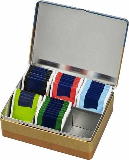 Ob für Teebeutel, als Schatztruhe für Perlen, als Ordnungshilfe auf dem Schreibtisch - diese hochwertige, farbig bedruckte Metalldose ist ein schönes und nützliches Präsent für alle Freunde geschmackvollen Designs.