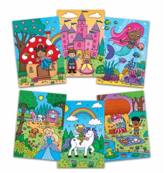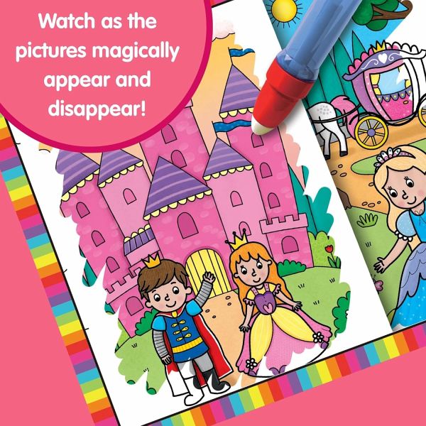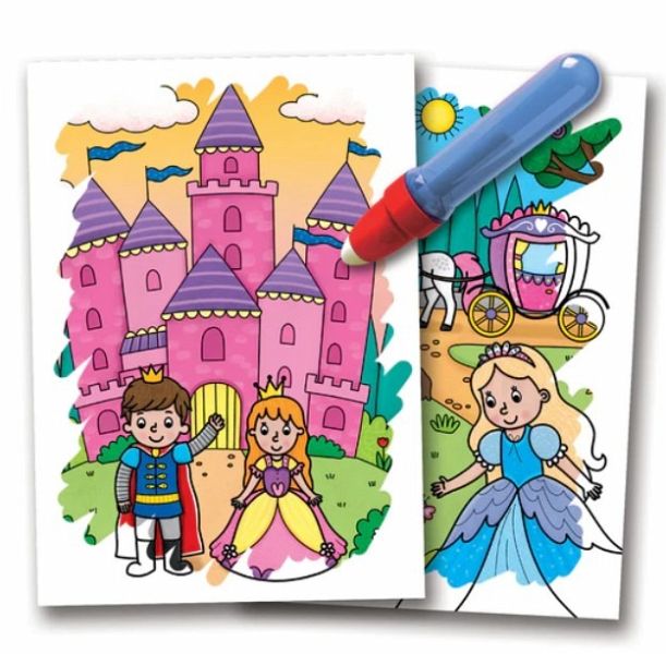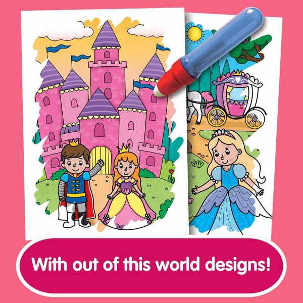 6 wiederverwendbare Bilder zum Ausmalen mit dem Wasserstift mit Märchenmotiv. Füllen Sie den Stift mit Wasser und verwenden Sie ihn, um die versteckten Bilder zu enthüllen. Die Farben erscheinen auf magische Weise immer wieder neu. Ideal für unterwegs.