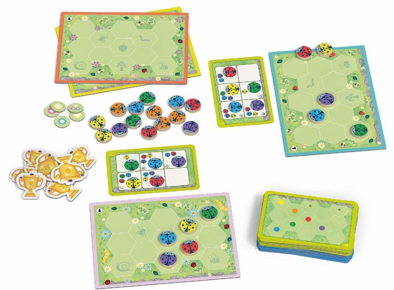 Wo sitzt welcher Käfer? Was für ein Gekrabbel auf der Blumenwiese! Die bunten Käfer laufen lustig durcheinander und sortieren sich immer wieder neu. Die Aufgabenkarten verraten euch, welche Käfer jeweils nebeneinandersitzen und welche nicht. Hier ist logisches Denken gefragt, denn für jeden Käfer gibt es nur eine richtige Position. Findest du sie?