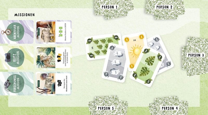 Los geht es auf aufregende Missionen! Bei diesem Stichspiel dreht sich alles um wilde Tiere. Sie brauchen bestimmte Bedingungen, um sich wohlzufühlen. Im spannenden Wettstreit eifert ihr mithilfe von Sonne, Wasser, Pflanzen und Co. darum, den Tieren einen Lebensraum bei euch zu bieten. Wer am Ende am meisten Tiere bei sich hat, gewinnt das Spiel.