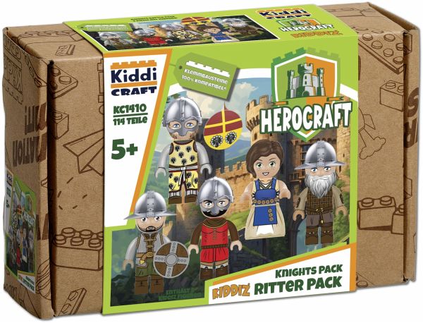 Kiddicraft KC1410 KIDDIZ Figuren-Pack: Ritter Für König und KIDDIZ-Land! Mit diesen tapferen Rittern kannst du deine Burgbesatzung verstärken (zB bei der Kiddicraft Ritterburg KC1501) oder dein Mittelalter-Klemmbaustein-Diorama beleben. - 5 KIDDIZ Figuren inkl. Ausrüstung (1 Ritter, 1 Bogenschütze, 2 Waffenknechte und 1 Magd) Sehr gute Qualität der Bausteine 100% kompatibel mit den Klemmbausteinen des Marktführers Gut verständliche Bauanleitung beiliegend Designed in Deutschland - Hergestellt in China Achtung! Nicht für Kinder unter 3 Jahren geeignet, da Kleinteile verschluckt werden können. Erstickungsgefahr!