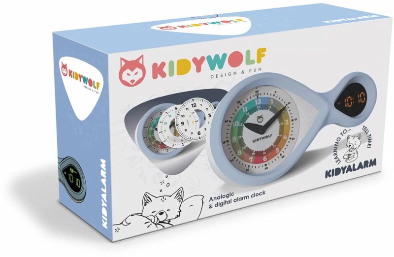 Der KIDYALARM ist mehr als nur ein Wecker. Mit ihm lernt dein Kind, die Uhr zu lesen. Dieser pädagogische Wecker wächst mit deinem Kind, dank seiner 3 austauschbaren Zifferblätter: ein Zifferblatt (ab 6 Jahren) verbindet Farben mit vollen Stunden, während die beiden anderen Zifferblätter (8 & 10 Jahre) helfen, das Konzept von Stunden und Minuten zu verstehen. Die Form der Uhr erinnert an die Unendlichkeit.