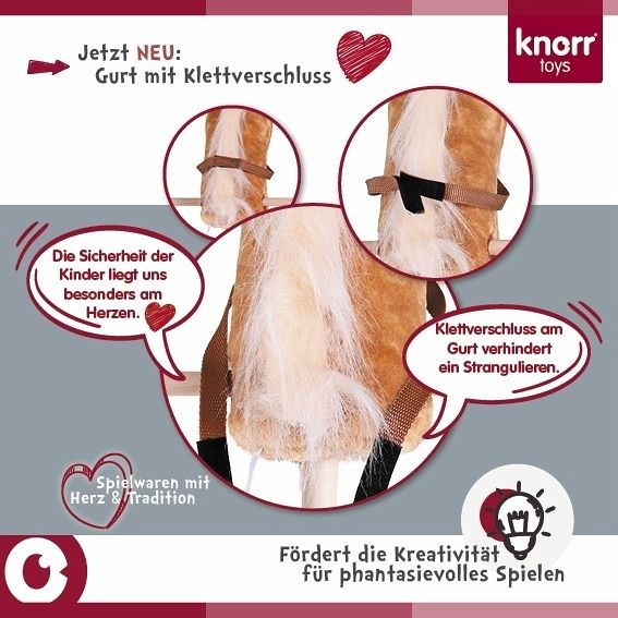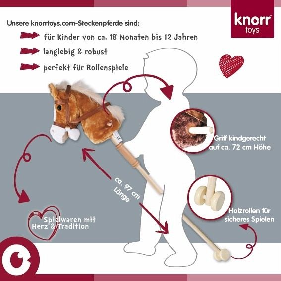 Mit dem Steckenpferd Sugar von knorrtoys können die Kleinen die Gegend unsicher machen. Dank der Holzgriffe und des Holzrades kann das scheue Pferd immer unter Kontrolle gebracht werden. Der zweigeteilte Holzstiel, welcher mit einem stabilen Schraubgewinde versehen ist, ermöglicht z. B. auch die einfache Mitnahme in den Urlaub, denn welches Kind träumt nicht von einem Ausritt am Strand oder in den Bergen.