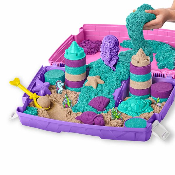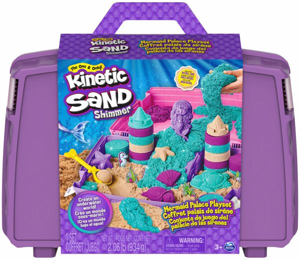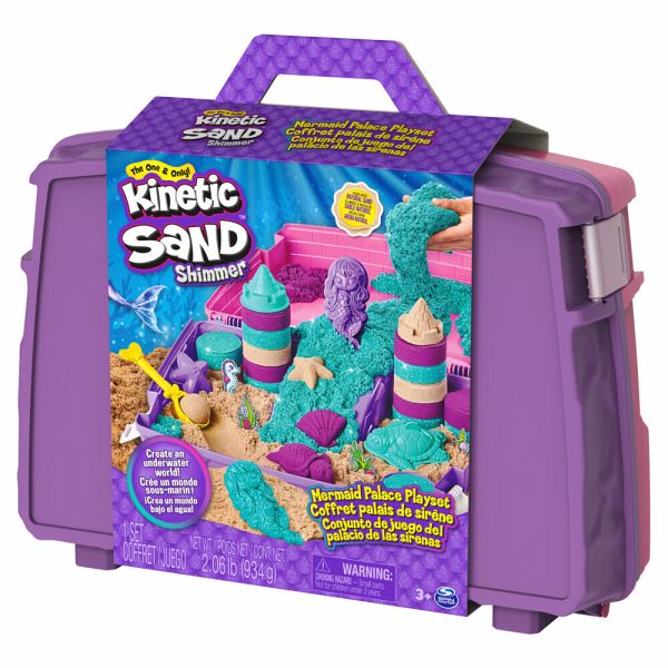 KNS Mermaid Folding Sand Box Kinder lieben es, Sand in den Händen zu haben und damit immer wieder aufs Neue fantasievolle Welten zu gestalten. Der Meerjungfrauen Koffer bietet mit mehr als 1 kg Kinetic Sand in drei Farben vielfältige kreative Möglichkeiten und eine große Spielfläche. Mit den sechs thematischen Förmchen lassen sich Meerjungfrauen, Muscheln und Meerestiere formen. Selbst die kleine Schaufel ist passend zum Thema gestaltet. Deko-Elemente aus Pappe komplettieren die kreativen Unterwasserwelten und beflügeln zusätzlich die Fantasie. Beim Formen und Gestalten trainieren Kinder ab drei Jahren ihren Tastsinn sowie die Feinmotorik sowie die Augen-Hand-Koordination und lernen spielend, ihre Welt zu begreifen. Der Koffer bietet eine Spielfläche für zwei Kinder sowie praktische Aufbewahrung. Da Kinetic Sand an sich selbst haftet und nicht an den Händen, ist er ideal für das Indoor-Spielen und erleichtert das Aufräumen. Die optimale Textur besitzt Kinetic Sand bei ca. 60% Luftfeuchtigkeit. Ist die Raumluft zu trocken, Kinetic Sand einfach mit etwas Wasser besprühen und ein paar Tropfen Wasser unterkneten und schon fließt er wieder faszinierend durch die Hände und lässt sich besonders gut formen und modellieren. Inhalt: 907 g Kinetic Sand in vier Farben 6 Förmchen 2 Werkzeuge Maße: 39,37 x 12,07 x 29,21 cm