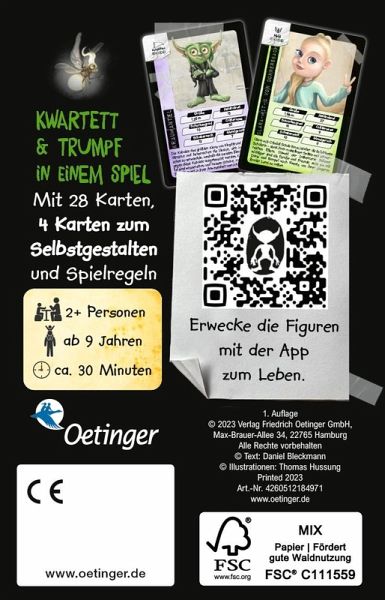 Passend zu der angesagten neuen Comicroman-Reihe ab 9 Jahren mit digitalen Features. Dein Kobold-Kwartett - ähm: Quartett und Trumpf in einem. Karten teilweise mit AR-Filtereffekten. Personalisiere deine Karten selber. Nicht verpassen: zu den KoboldKroniken gibt es einen ganzen Kosmos mit Spielen, Exit Quest und mehr.
