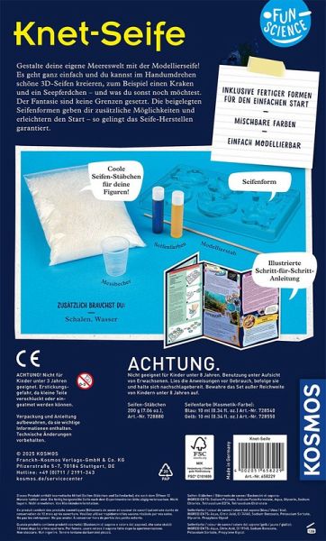 - Sicherheitsgeprüft und in bewährter KOSMOS-Qualität kneten Kinder mit diesem Set bunte Meerestiere aus Seife und können ihrer Kreativität freien Lauf lassen.