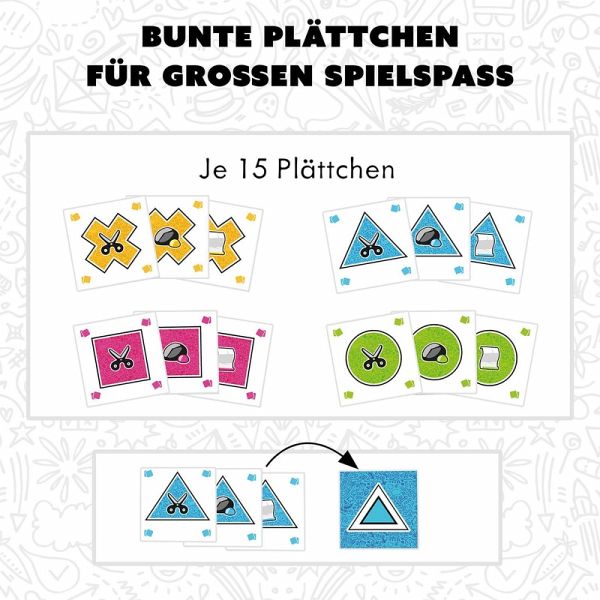 Lustige Kombination der Klassiker "Tic-Tac-Toe" & "Schere, Stein, Papier". Schnelles Taktikspiel für die ganze Familie oder den Spieleabend mit Freundinnen und Freunden. Für 2-4 Spieler und Spielerinnen ab 7 Jahren. Einfache Regeln, schnell losspielen. Hochwertiges Geschenkformat zum Verschenken oder für unterwegs. Die Spieleklassiker "Tic-Tac-Toe" und "Schere, Stein, Papier" in Einem - das ist Linx! Die Spielerinnen und Spieler versuchen drei gleiche Plättchen in einer Reihe zu platzieren. Dafür entscheiden sie, ob sie ein neues Plättchen offen orthogonal oder diagonal angrenzend an ein vorhandenes anlegen oder dieses verdeckt einsetzen, um ein anderes Plättchen zu überdecken. Der Clou: Plättchen dürfen nur verdeckt gespielt werden, wenn das Symbol das darunter liegende Teil nach den "Schere, Stein, Papier"-Regeln "besiegt". Ein raffiniertes Taktikspiel mit einfachen Regeln für zwei bis vier Spielerinnen und Spieler ab sieben Jahren im kompakten Format zum Mitnehmen oder Verschenken.