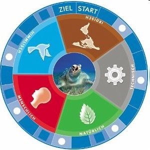 Dabei sind die Antwortmöglichkeiten A, B, C bei richtiger Antwort der Spieler entweder einen Zug vorwärts wert oder die Aufnahme eines Chips aus dem passenden Wissensbereich.