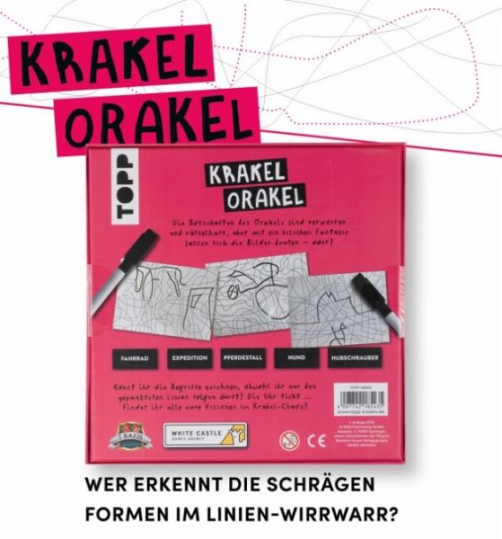 Kooperatives Party- und Familienspiel: Kann das Gekrakel der anderen richtig entschlüsselt werden?Die Botschaften des Orakels sind verworren und rätselhaft, aber mit ein bisschen Fantasie lassen sich die Bilder deuten … oder?