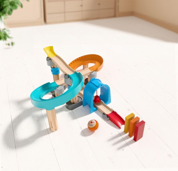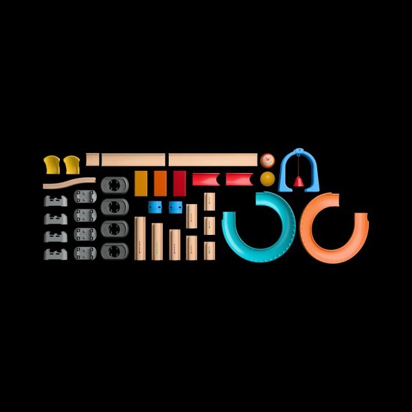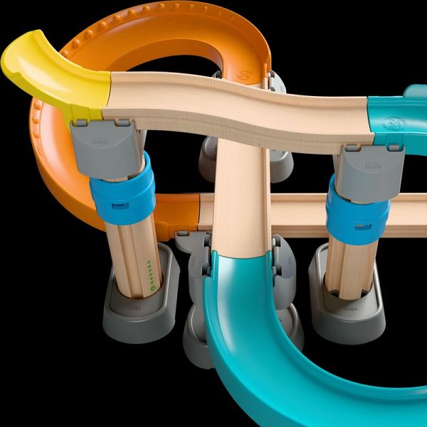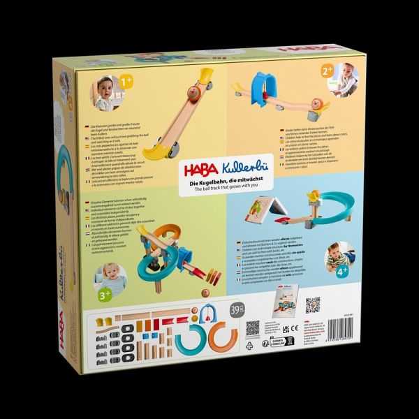 Achtung, Kugel kommt! Nachdem sie die Ratterkurven passiert hat und durch den Klingeltunnel gerauscht ist, bringt die große Kugel die Bausteine zum Einsturz - Kinder lieben?s! Kullerbü begeistert sie von Anfang an! Während die Allerkleinsten am liebsten die Kugel erkunden und sie staunend beim Herumkullern beobachten, möchten die Großen schon beim Teile-Heraussuchen und Aufbauen helfen. So kann aus einer einzelnen Geraden mit der Zeit eine komplexe Bahn entstehen - immer angepasst an die jeweiligen Entwicklungsschritte des Kindes. Verschiedene Elemente sorgen für extra Spielspaß. Tipp: Kreative können ihre Bahnen z. B. mit Büchern als Tunnel oder Bahnverlängerung immer neu gestalten.