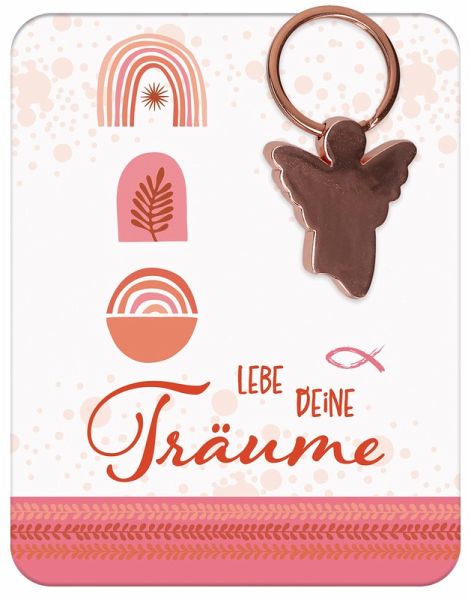Der Engel-Schlüsselanhänger "Lebe deine Träume" ist ein wunderschönes und bedeutungsvolles Geschenk zur Konfirmation. Aus hochwertigem roségoldfarbenem Metall gefertigt, vereint dieser Schlüsselanhänger Eleganz und Symbolik. Mit den Maßen 3,4 x 6,8 x 0,7 cm ist er handlich und passt perfekt an jeden Schlüsselbund oder als stylisches Accessoire an Taschen. Die Lieferung erfolgt auf einer ansprechend gestalteten Backcard, die die Botschaft des Glaubens und der Inspiration unterstreicht. Dieser Schlüsselanhänger ist nicht nur praktisch, sondern erinnert das Konfirmationskind jeden Tag daran, an seine Träume zu glauben und seinen eigenen Weg zu gehen.