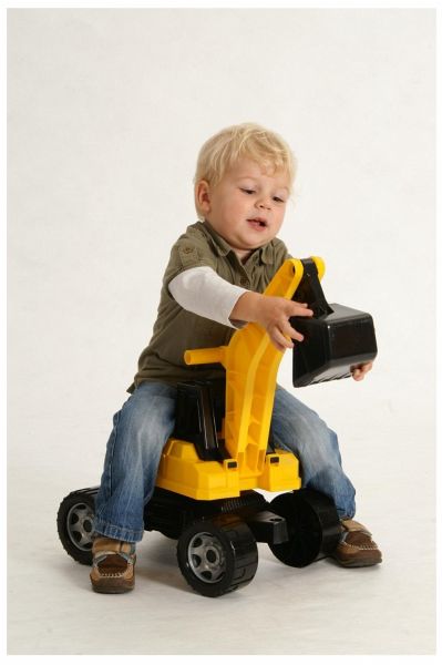 LENA® GIGA TRUCKS Bagger schwarz-gelb, 6 mm verzinkte Stahlachsen. Die Baggerschaufel ist aufgrund der beiden praktischen Griffe kinderleicht zu bedienen. Länge: ca. 68 cm. Geeignet für Kinder ab 18 Monaten Indoor <(>&<)> Outdoor geeignet. Verpackungsart: Lose mit Hangtag und Produktinformationen. MADE IN EUROPE. Spielgut!