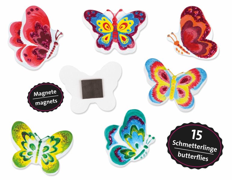 Komplettset zum Gießen und Gestalten von Glitzer-Schmetterlingen in 6 verschiedenen Formen mit Magnet.