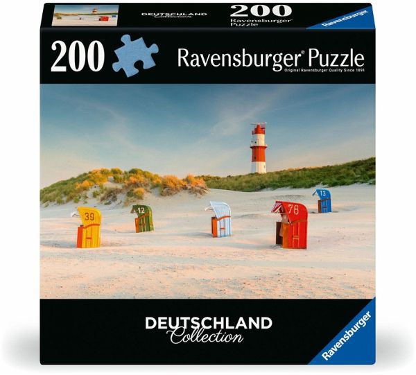 Deutschland von seiner schönsten Seite entdecken. Bezaubernde Landschaften, historische Städte, bekannten Sehenswürdigkeiten. Ravensburger Puzzles bedeutet Puzzlespaß in Premium Qualität. Puzzleteile, charakteristisch und einzigartig durch von Hand gefertigte Stanzwerkzeuge. Die jahrzehntelange Erfahrung in der Puzzleproduktion sowie den hohen Qualitätsanspruch lassen die Herzen der Puzzler höher schlagen und lässt erleben, wie eins zum andern passt. Hier wird Leidenschaft gelebt. Schon einmal Urlaub in Deutschland gemacht? Mit der Deutschland Collection von Ravensburger lässt sich Deutschland Stück für Stück neu entdecken. Die Puzzlemotive der Deutschland Collection mit 200 Teilen zeigen Deutschland von seiner schönsten Seite, von Landschaften über Städte bis hin zu bekannten Sehenswürdigkeiten. Mit mehr als 300 Puzzlemotiven für Erwachsene von 300 bis 40.320 Teilen hält das Sortiment von Ravensburger für jeden das richtige Puzzle bereit. Ravensburger Puzzles bedeutet Puzzlespaßin Premium Qualität. Puzzleteile, charakteristisch und einzigartig durch von Hand gefertigte Stanzwerkzeuge, die jahrzehntelange Erfahrung in der Puzzleproduktion sowie den hohen Qualitätsanspruch lassen die Herzen der Puzzler höher schlagen und lässt erleben, wie eins zum andern passt. Hier wird Leidenschaft gelebt.