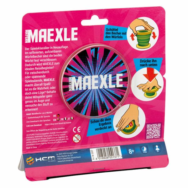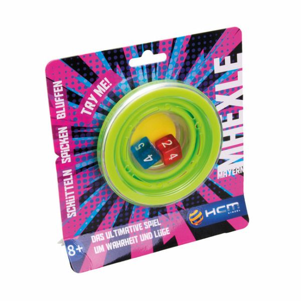 Der Spieleklassiker in Neuauflage. Im aufziehbaren Würfelbecher sind die beiden Würfel fest verschlossen. Der Spieler zieht den Becher mit den Würfeln auf, schüttelt ihn und drückt ihn dann nach unten, um die Würfel zu fixieren. Nun wirft er einen Blick auf die Würfel, ohne dass die Mitspieler sie sehen können und nennt die erwürfelte Zahl - oder blufft. Der nächste Spieler muss entscheiden, ob der vorherige Spieler die Wahrheit sagt oder vielleicht doch über die gewürfelte Punktzahl lügt.