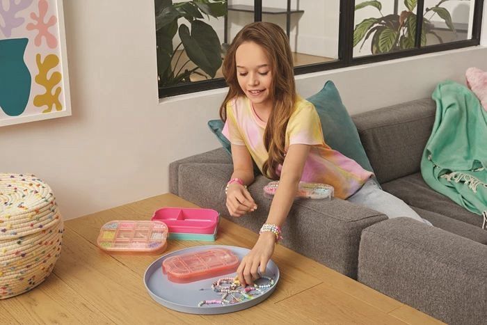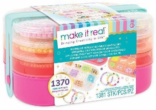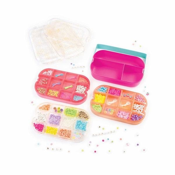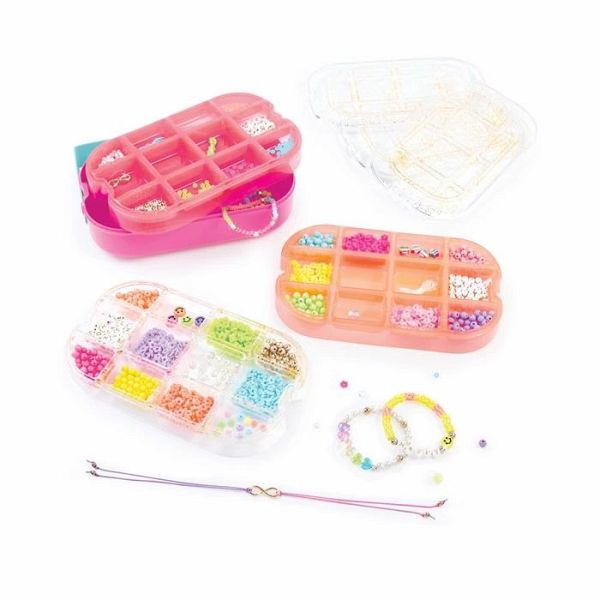 Do-It-Yourself Armbänder-Set in einer handlichen To-Go-Box mit praktischem Griff. Inhalt: 2 durchsichtige und elastische Schnüre, 4 Nylonschnüre in verschiedenen Farben, 3 Aufbewahrungsschalen, 1370 verschiedenartige Perlen, 1 Anleitung.