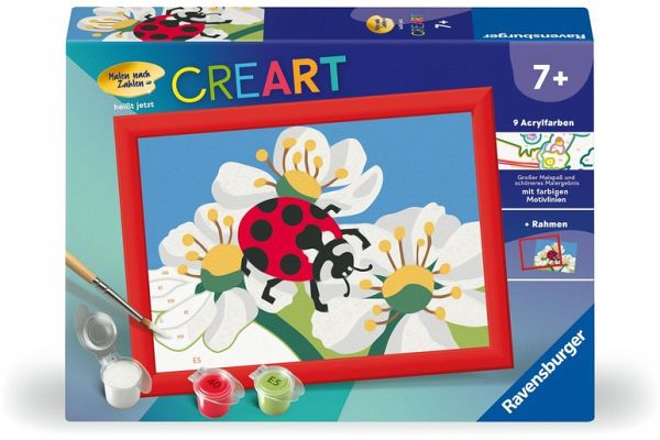Farbige Motivlinien: Größerer Malspaß & ein schöneres Ergebnis! Dank der farbigen Motivlinien, können die Kinder das ganze Motiv Marienkäfer und die Farben schneller erkennen. Der Pinsel hat eine gute Führung und so entsteht ein perfektes Bild. Die schönen Motive zum Ausmalen sind eine tolle Geschenkidee für Kinder ab 7 Jahren und eine schöne Dekoration. In diesem Malset sind bereits 9 fertig gemischte Acrylfarben enthalten. Verpackungsdesign kann abweichen. Mit Malen nach Zahlen von Ravensburger lernen die Kinder Flächen sorgfältig auszumalen, ihr Maltalent zu verbessern sowie feinmotorische Fähigkeiten zu entwickeln. Am Ende stehen Freude, Stolz und ein Erfolgserlebnis, das die Lust am Weitermalen weckt. Die Motive sind altersgerecht in drei Schwierigkeitsstufen umgesetzt: von einfachen Bildern mit wenigen, großen Malflächen bis hin zu Bildern mit vielen, kleinen Malflächen für Fortgeschrittene. Jedes Malset enthält alles, was Künstler zum Malen brauchen und es ist kein Mischender Farben notwendig. Das Ravensburger Malen nach Zahlen Programm bietet eine große Motivauswahl für Kinder und Erwachsene.