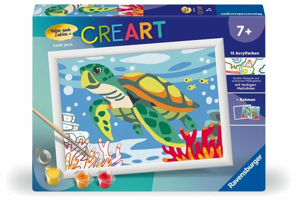 Farbige Motivlinien: Größerer Malspaß & ein schöneres Ergebnis! Dank der farbigen Motivlinien, können die Kinder das ganze Motiv Meeresschildkröte und die Farben schneller erkennen. Der Pinsel hat eine gute Führung und so entsteht ein perfektes Bild. Die schönen Motive zum Ausmalen sind eine tolle Geschenkidee für Kinder ab 9 Jahren und eine schöne Dekoration. In diesem Malset sind bereits 15 fertig gemischte Acrylfarben enthalten. Verpackungsdesign kann abweichen. Mit Malen nach Zahlen von Ravensburger lernen die Kinder Flächen sorgfältig auszumalen, ihr Maltalent zu verbessern sowie feinmotorische Fähigkeiten zu entwickeln. Am Ende stehen Freude, Stolz und ein Erfolgserlebnis, das die Lust am Weitermalen weckt. Die Motive sind altersgerecht in drei Schwierigkeitsstufen umgesetzt: von einfachen Bildern mit wenigen, großen Malflächen bis hin zu Bildern mit vielen, kleinen Malflächen für Fortgeschrittene. Jedes Malset enthält alles, was Künstler zum Malen brauchen und es ist kein Mischen der Farben notwendig. Das Ravensburger Malen nach Zahlen Programm bietet eine große Motivauswahl für Kinder und Erwachsene.