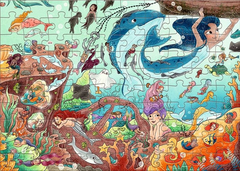 - Faszination Unterwasserwelt: Wimmeliges Meerjungfrauen-Puzzle im Format 25 x 35 cm für Kinder ab 6 Jahren.