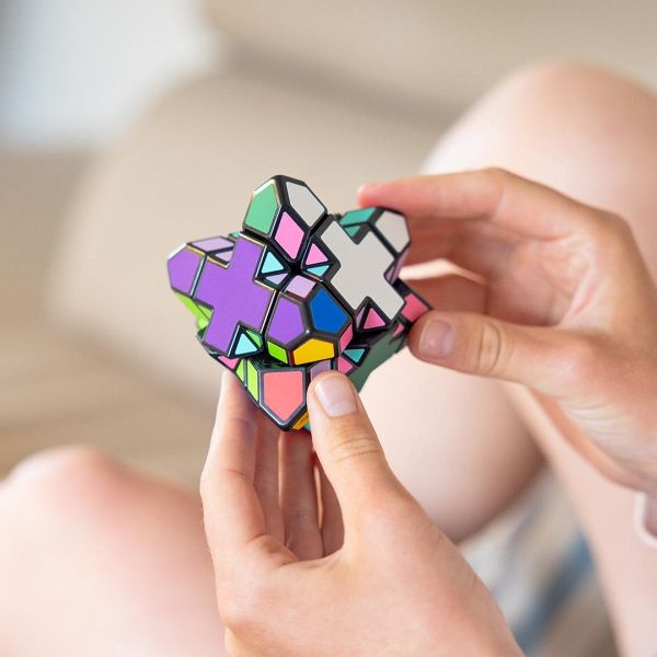 Skewb Xtreme ist ein Rätselspaß der Superlative. Eine unglaubliche Herausforderung, aber keine unlösbare Aufgabe. Und es ist eine der wundervollsten geometrischen Formen, die die Welt je gesehen hat - perfekte Symmetrie aus jedem Blickwinkel. Mit seinen 10 Farben ist es außerdem eines der farbenreichsten Rätselsspiele, die es gibt. Die farblichen Segmente zunächst durcheinanderdrehen. Versuchen Sie dann, die Farben im X wieder in ihre geordnete Grundstellung zurückzudrehen.