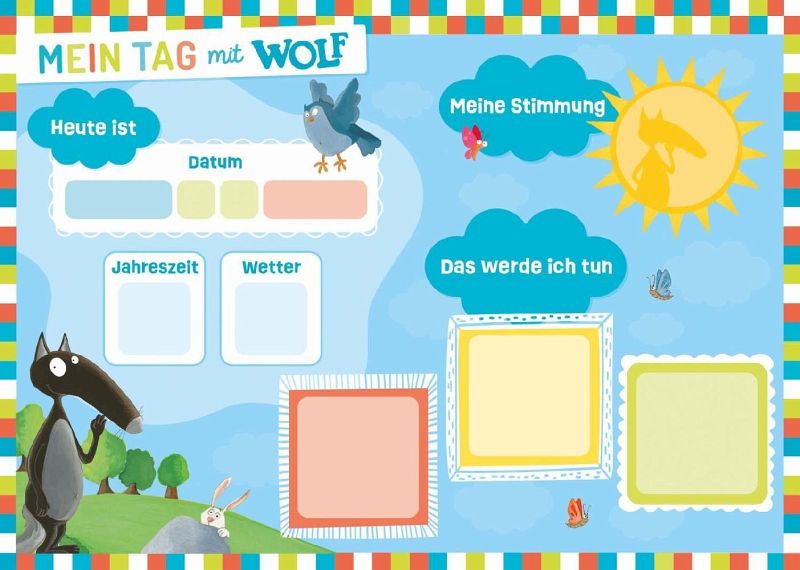 Dein Tagesplaner mit tollen Wolf-Magneten! 60 Magnete, 1 buntes Poster, um deinen Tag zu gestalten, die Box ist magnetisch!