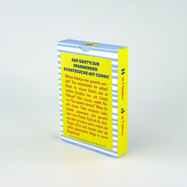 Auf geht's zur spannenden Schatzsuche mit Conni! Welche Schätze hier gesucht werden? Das dürfen die Kinder ganz für sich selbst entscheiden: Die Suchaufträge in diesem Spiel sind so offen gehalten, dass sie sowohl draußen in der Natur als auch drinnen erfüllt werden können. Können die Kinder etwas finden, das so ein tolles Muster hat wie Connis Pullover? Oder etwas, das kleiner ist als Kater Mau? Wenn alle mit ihren Funden zurückgekehrt sind, kann der Austausch beginnen. So erkunden die Kinder spielerisch ihre Umgebung und nehmen sie bewusster wahr.