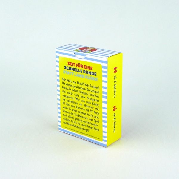 Wenn Conni einmal langweilig wird, muss ein Spiel her. Was eignet sich da besser als ein Klassiker wie »Stadt Land Fluss«? Noch dazu im praktischen Kartenformat. Damit können sich Kinder ab 6 Jahren, egal ob zu Hause oder unterwegs, beschäftigen und gegeneinander antreten. Wer findet am schnellsten ein gutes Versteck mit G? Oder eine Kuchensorte mit M? Mit ihrer Freundin Conni vertiefen die Kinder so spielerisch ihren Wortschatz und fördern ihr kreatives Denken.