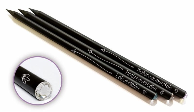 Schönes für Lehrer und Lehrerinnen an Grundschulen und weiterführenden Schulen, alle Fächer, Klasse 1-13 +++ Wenn der Schulalltag mal trist und grau ist, hilft es nur, es sich selbst nett und schön zu machen. Schöne Schreibtisch-Accessoires und praktische und zugleich hübsche Schreibutensilien gehören dazu. So wie diese mit Swarovski-Steinen verzierten, hochwertigen Bleistifte. Jeder der schwarz durchgefärbten Bleistifte ist mit einem andersfarbigen Stein bestückt und für die Extraportion Schreibmotivation mit einem augenzwinkernden Statement bedruckt: Der "Notenzauberstab", der "Notizenveredler" und der "Lobverteiler" sind immer zur Hand, wenn Sie sie im Schulalltag brauchen. Und wenn sie mal nicht im Gebrauch sind, machen sich die Stifte einfach nur wunderbar als schmückendes Schreibtisch-Accessoire. Denn die Kombination aus schlichtem Schwarz, etwas Glitzer und witzigem Statement passt fabelhaft in das so beliebte Scandi-Design und macht jedes Arbeitszimmer und jeden Schreibtisch zum Hingucker. Ein ideales Geschenk für Sie selbst oder die Lieblingskollegin und eine schöne Ergänzung zu allen weiteren Organisationshilfen und Papeterie-Artikeln vom Verlag an der Ruhr.