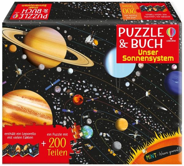 Erforsche die Geheimnisse und Wunder unseres Sonnensystems! Spannende Fakten und faszinierende Bilder zu unserer Erde und ihren benachbarten Planeten erwarten dich in dem Leporello und 200-teiligen Puzzle. Fertiges Puzzle ca. 59 x 40 cm