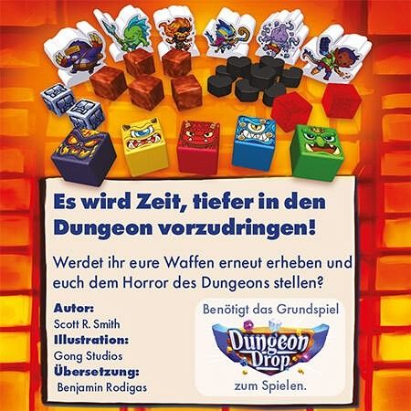 Mit Dungeon Drop - Dropped Too Deep gibt es nicht nur neue Rassen, Klassen, Monster, Würfel und Aufgaben, sondern auch einen spannender kooperativer Modus.