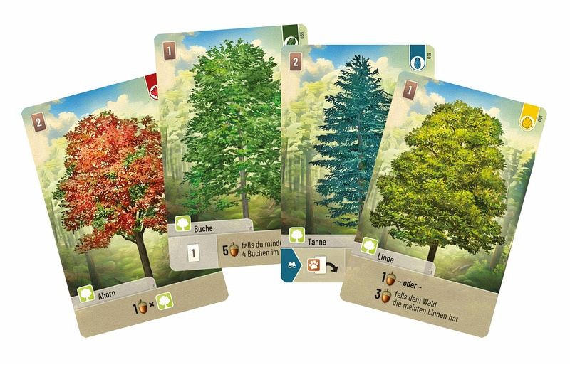 Spielt Baumkarten von eurer Hand, an die unterschiedliche Tiere, Pflanzen und Pilze angelegt werden.