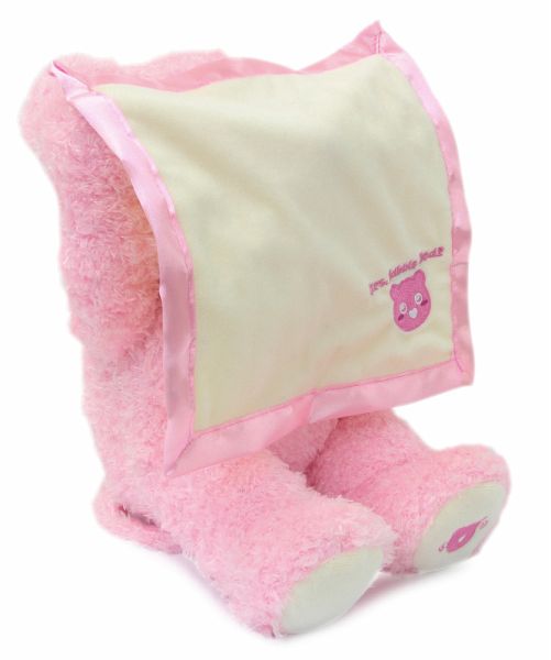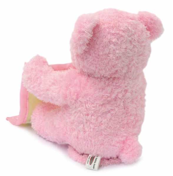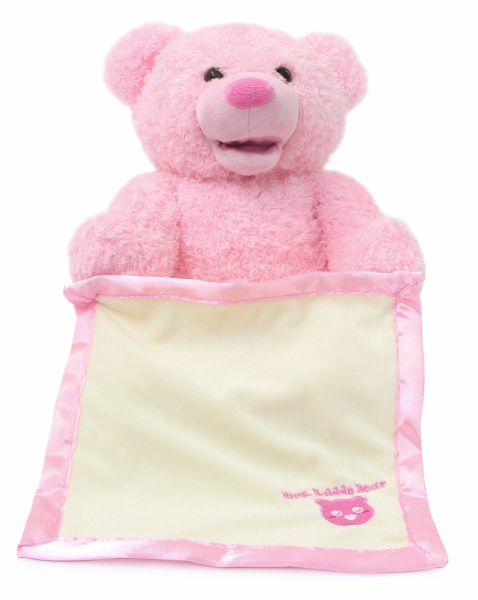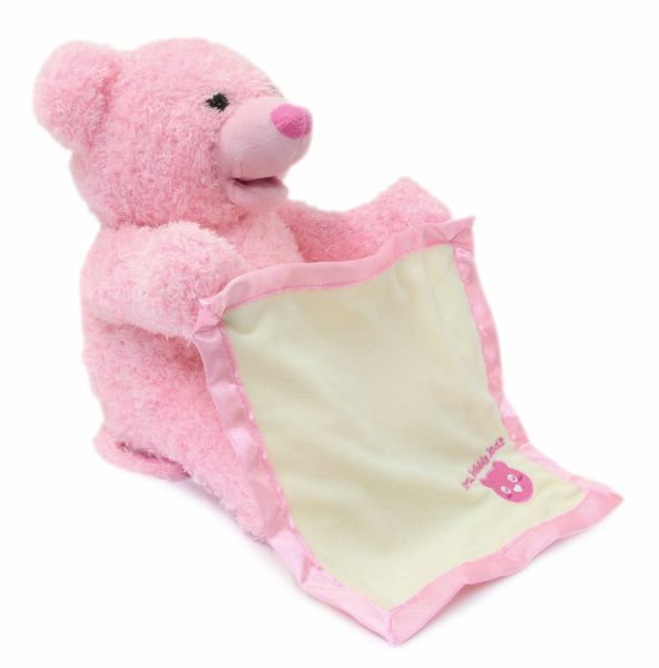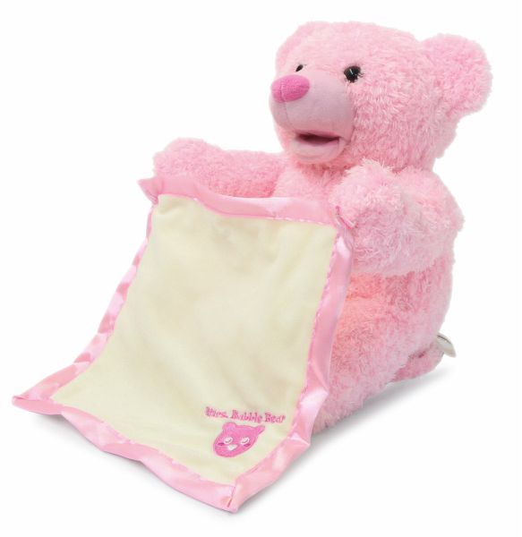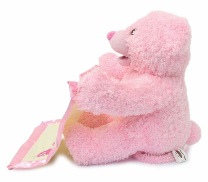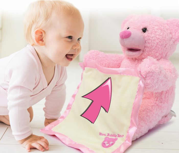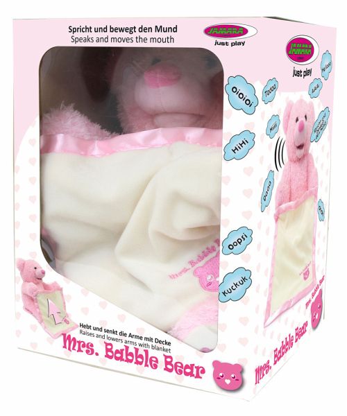 Mit Mrs. Babble Bär kommt eine flauschige Spielgefährtin zu den Kleinsten in die Kinderzimmer. Der süße Bär mit seinem weichen rosa Fell spielt mit seiner Kuscheldecke ein lustiges Versteckspiel in dem er sie mit seinen Armen hoch und runter bewegt. Der plüschige Stoffbär spricht und interagiert mit seinem liebvollen Gesicht zu den Kindern, macht niedliche Geräusche und bewegt dabei seinen Mund. Diese samtweiche Freundin wird ihnen dabei sofort ans Herz wachsen. Mrs. Babble Bär kann überall mitgenommen werden. Ob im Auto, Kindergarten oder zum Familienfest. Eine Spielkameradin, die immer dabei ist und auch mit mehreren Kindern für großen Spielspaß sorgt.