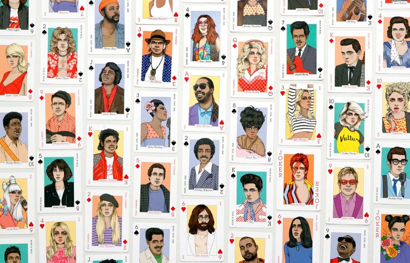 Aus einem gewöhnlichen Kartenspiel wird etwas ganzBesonderes: vier fantastische Musikgenres ersetzen die vierüblichen Farben Herz, Pik, Kreuz und Karo:POP = HerzROCK 'N' ROLL = PikFOLK & COUNTRY = KaroSOUL, BLUES & R&B = KreuzEnthält 52 Spielkarten mit Abbildungen der großen Starsdes Musikerhimmels - darunter Madonna und Prince in Pop,Kurt Cobain und Jimi Hendrix in Rock, Johnny Cash undBob Dylan in Folk und Nina Simone und Amy Winehouse inBlues - sowie zwei Joker (Björk und David Bowie).