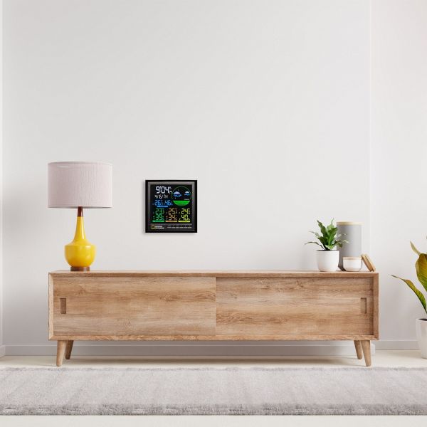 Die NATIONAL GEOGRAPHIC VA Farb Wetterstation 4 Messbereiche schwarz zeigt Ihnen alle wichtigen Wetterinformation auf einem Blick. Auf dem übersichtlich gestalteten Farbdisplay finden Sie Informationen, wie z.B. die Temperatur und Luftfeuchtigkeit für innen und außen, sowie stets die genaue Uhrzeit per DCF-Funkübertragung und den aktuellen Wochentag. Überwachen Sie bis zu 4 unterschiedliche Räume auf Temperatur und Luftfeuchtigkeit.