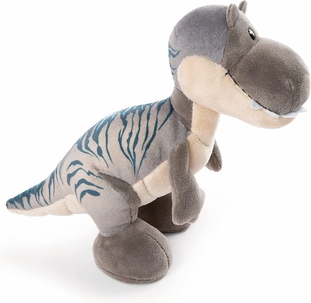 Als König der Echsen kuschelt sich Tony-Rex in die Herzen von kleinen und großen Dino-Fans. Seine stattliche Statue, kräftige Hinterbeine, ein langer Schwanz und die typisch kurzen Vorderbeine machen aus dem flauschig weichen NICI Dino einen abenteuerlichen Freund zum Schmusen, Trösten, Zuhören, Spielen und Unfug machen. Sein extrem niedlicher Gesichtsausdruck und die großen, weichen Zähne von Tony-Rex sind so gar nicht furchteinflößend. Der graue Plüschkörper mit dem auffälligen All-Over Druck ist detailgetreu verarbeitet.