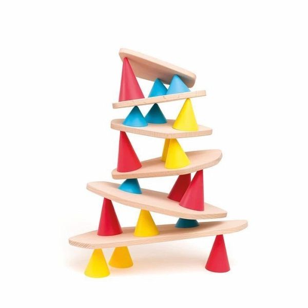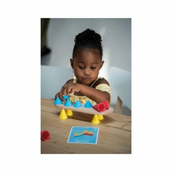 Piks ist ein Konstruktionsspielzeug, dass die motorischen Fähigkeiten der Kinder sowie die Kreativität fördern soll. Inhalt: 18 Kegel aus Silikon (3 verschiedene Grössen, blau, rot, gelb) sowie 6 massive Holzplatten und Anleitungsheft (mit Beispielen)