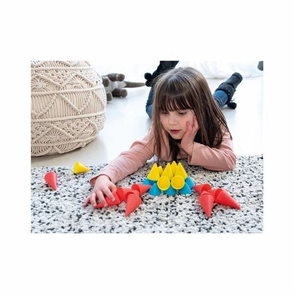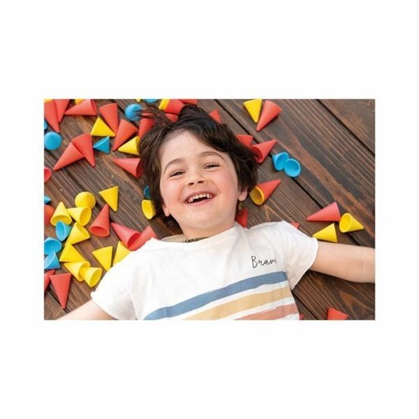 Piks ist ein Konstruktionsspielzeug, dass die motorischen Fähigkeiten der Kinder sowie die Kreativität fördern soll. Inhalt: 48 Kegel aus Silikon (3 verschiedene Grössen, blau, rot, gelb) und Anleitungsheft (mit Beispielen)