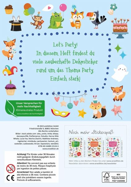 In diesem Heft findest du viele zauberhafte Dekosticker rund um das Thema Party. Ob bunte Fähnchen, Tiere oder Zahlen - hier findet jeder sein Lieblingsmotiv.